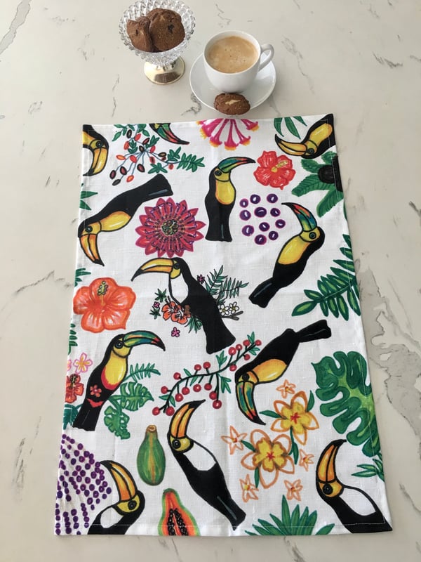 Our custom-printed tea towel is perfect for adding a pop of colour to your kitchen, lining a serving, tea or coffee tray, or even hanging on a wall as a decorative textile print.